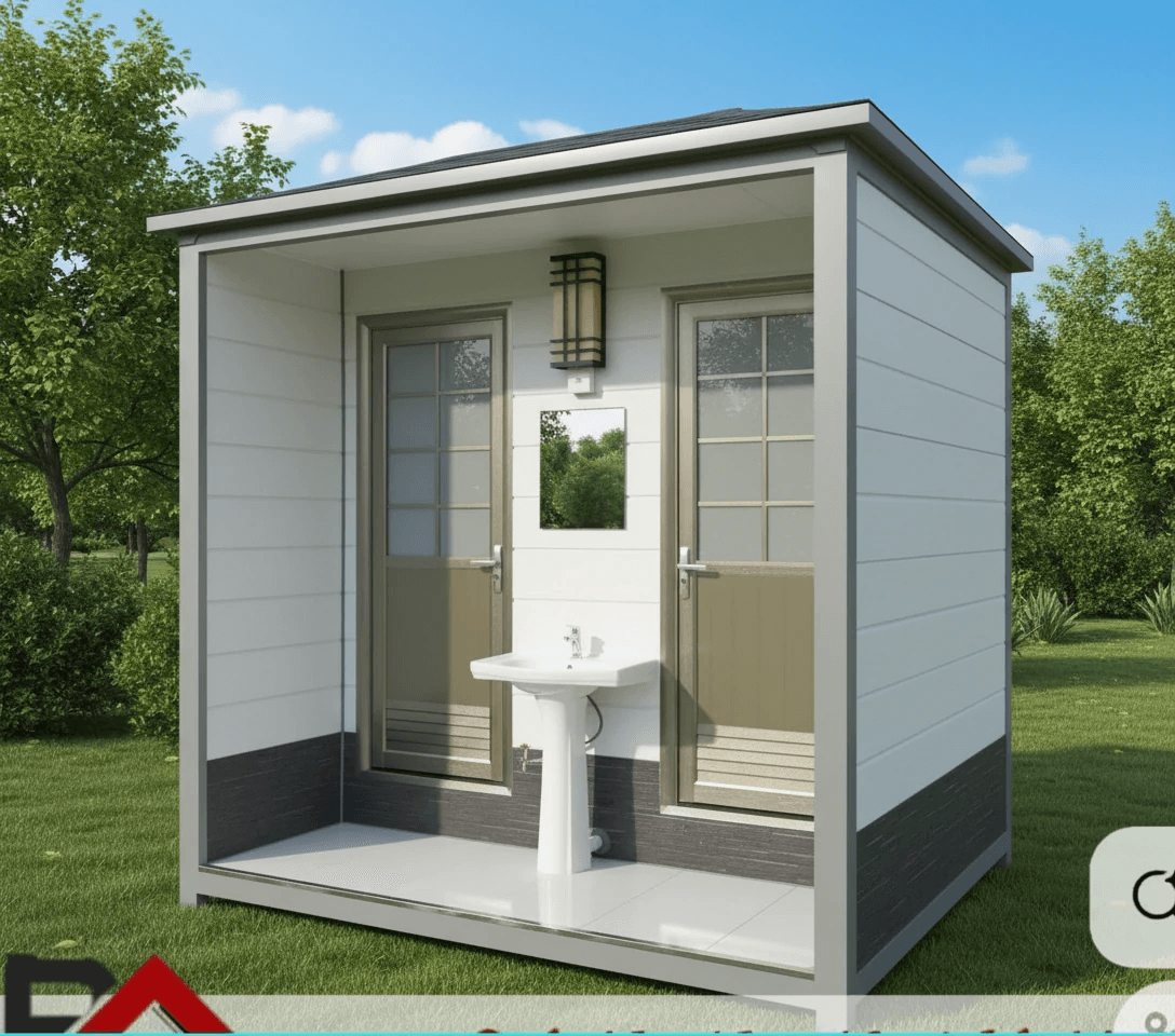 کانکس سرویس تک چشمه : مناسب باغها، ویلاها، پروژههای کوچک و نگهبانیها.